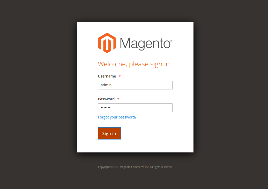 You have successfully installed Magento 2.4 on Rocky Linux 10. You can now start building your online store using the Magento platform on your dedicated server from Atlantic.Net.