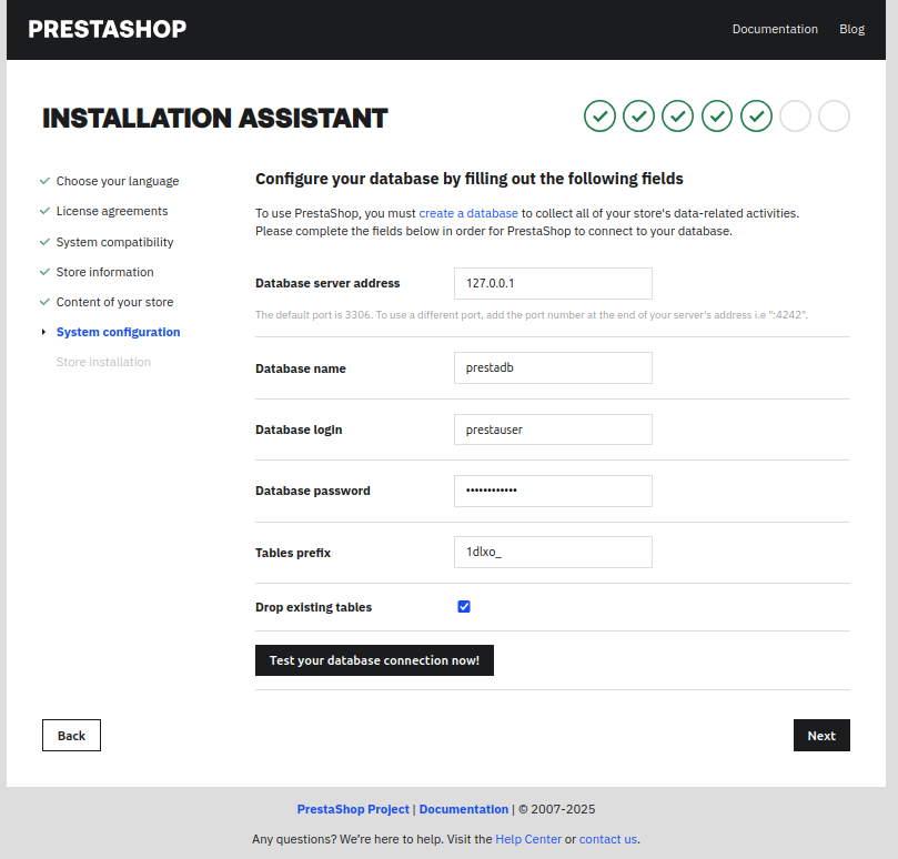 Define your database and click on the “Test your database connection now” then click on the Next button. Once the installation is finished, you should see the following screen: