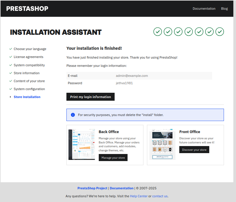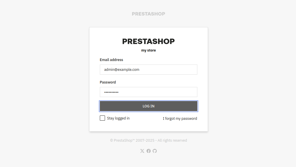 Click on the Manage Your Store button. You should see the PrestaShop login screen: