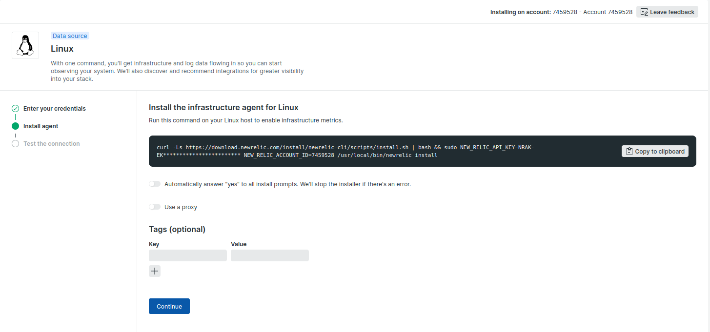 curl -Ls https://download.newrelic.com/install/newrelic-cli/scripts/install.sh | bash && sudo NEW_RELIC_API_KEY=NRAK-EKQIT4WVIIA81GP2FMIVHD70K7F NEW_RELIC_ACCOUNT_ID=7459528 /usr/local/bin/newrelic install -y