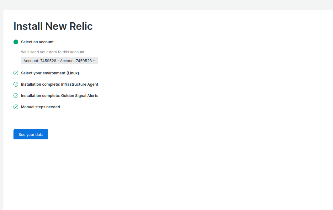 Please remember the New Relic URL as shown in the above output. You will need it to access the New Relic web interface.