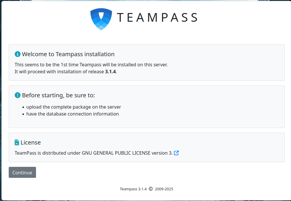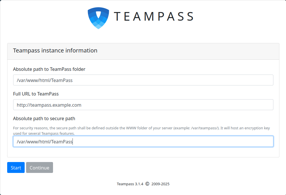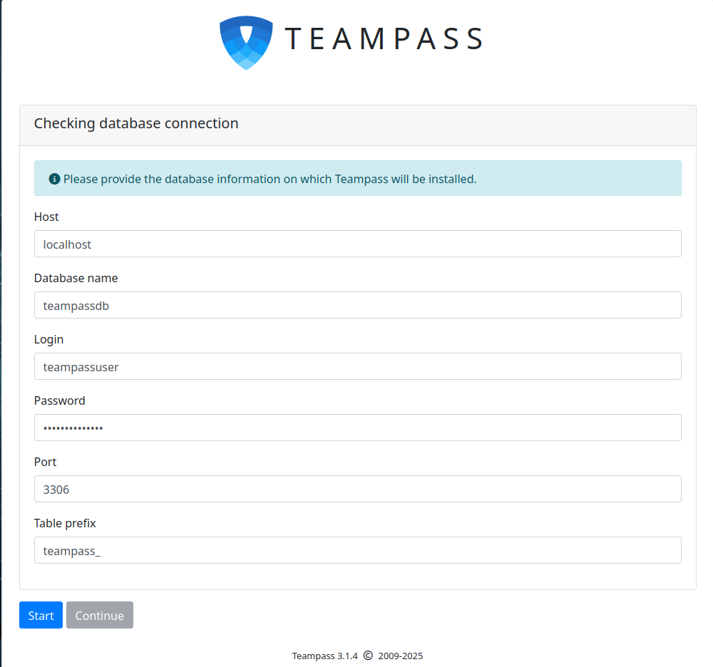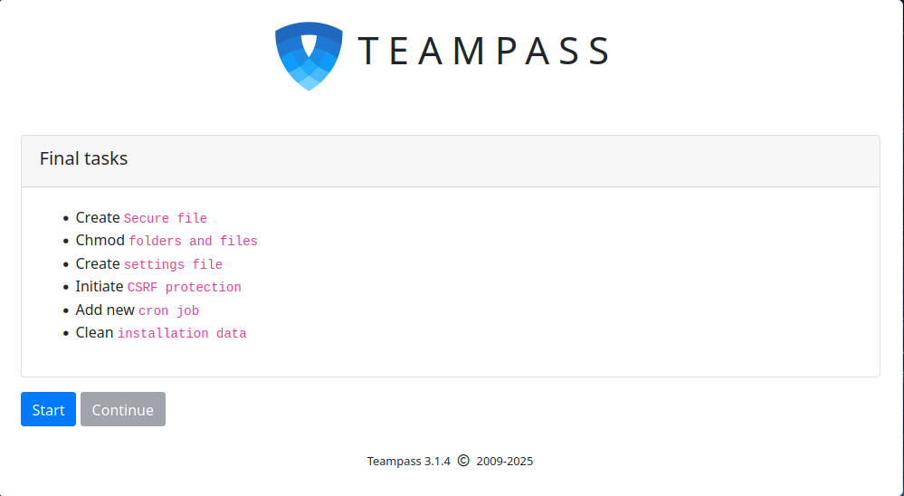 At this point, the Apache web server is configured to serve Teampass. You can now proceed to the Teampass web interface.