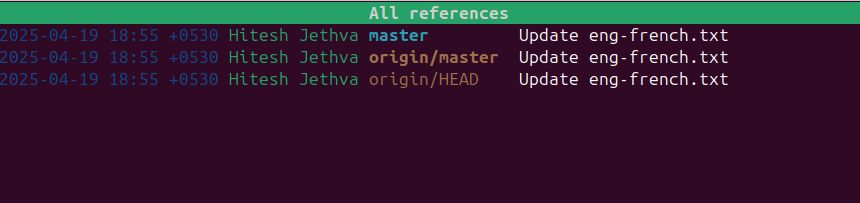 To display all the references of your repository, run the following command: