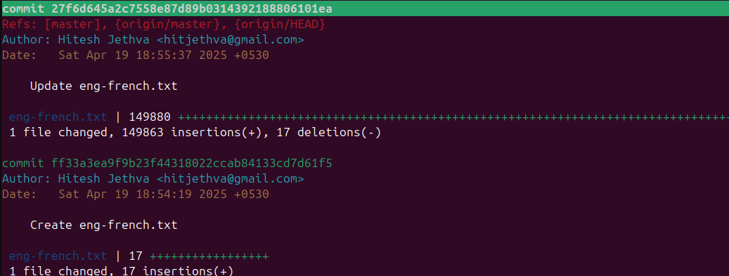 You should see the detailed information on your commits on the following screen: